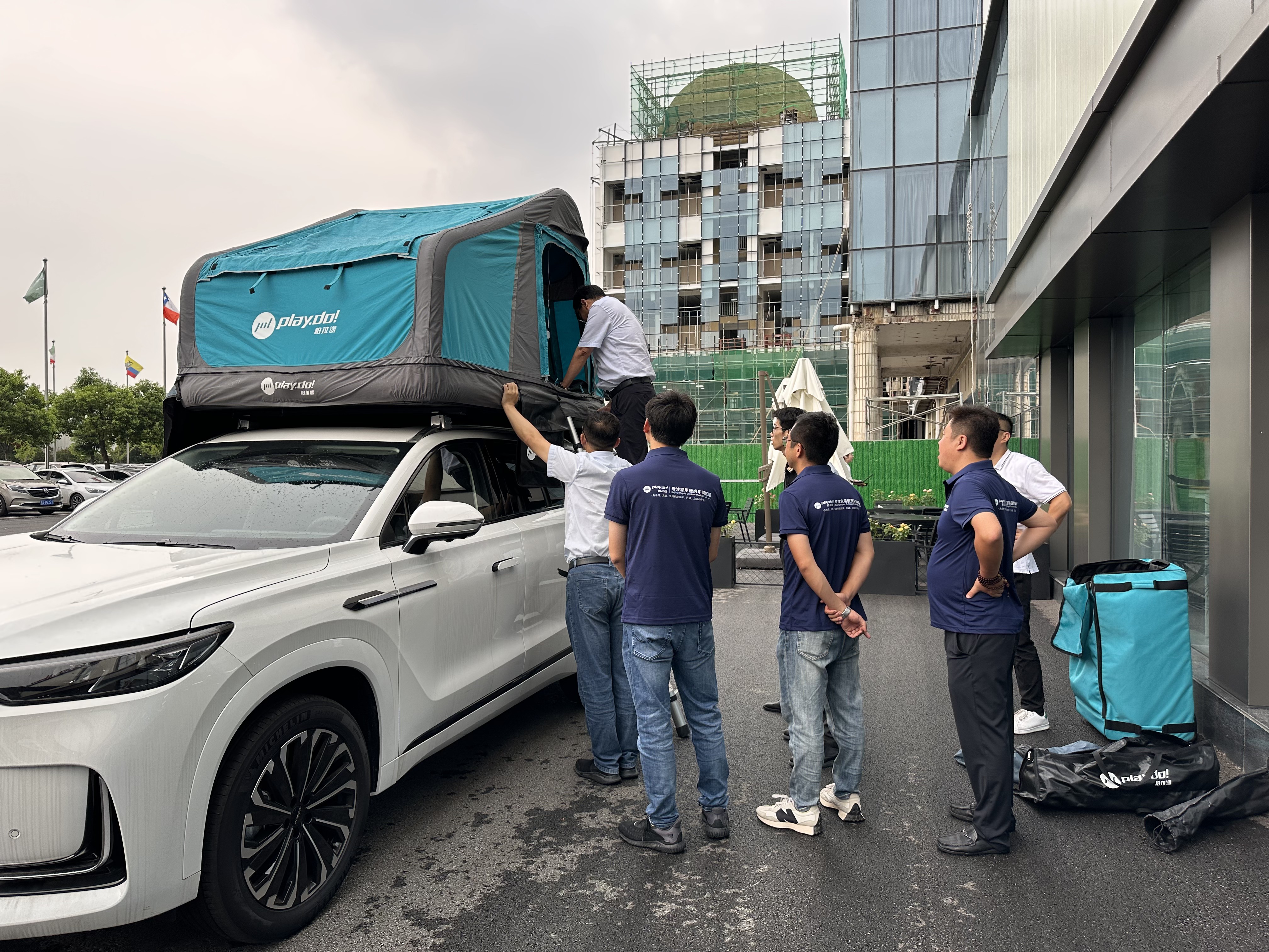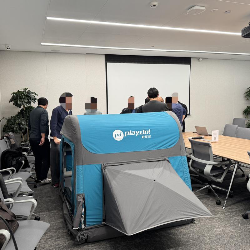 Playdo, which has been deeply involved in the outdoor tent field for more than ten years, has been recognized by Chery for its multiple design patents and production experience. Recently, the team traveled across provinces with their first generation self-developed product to demonstrate the structural design and functional highlights of tents on site. They had in-depth exchanges with Chery's technical team on tent production processes, wind and pressure resistance technology, and collided with technical sparks in material weather resistance testing, modular installation, and other dimensions.